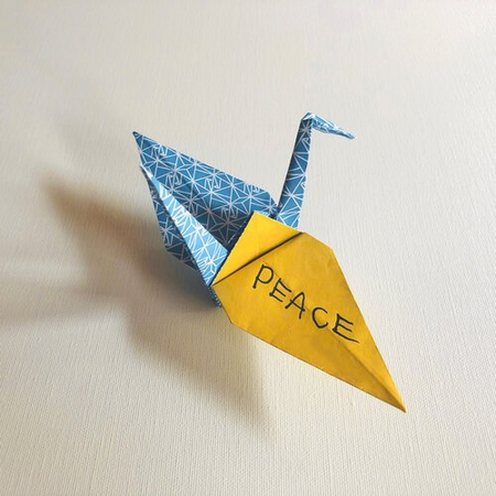2歳のときに広島で被爆し、10年後に突然白血病と診断され、8か月の闘病生活の間、古くからの言い伝えを信じて、おりづるを作り続けたが亡くなってしまった佐々木禎子さんの話を聞いた人々が、世界中で今日もおりづるを作っています。