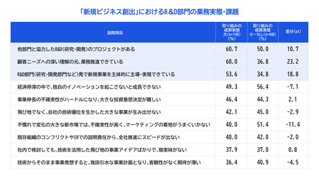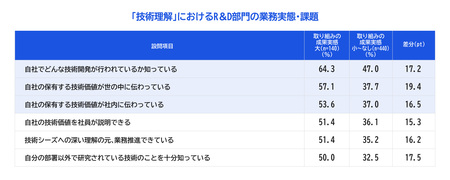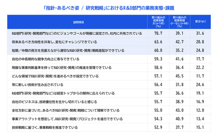 る「R&D部門の積極的な貢献」を、約4倍も実感できている結果となった。