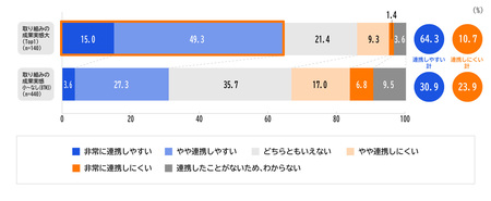 常に連携しやすい・やや連携しやすい」と回答し、成果実感が低い企業は30.9%にとどまった。
