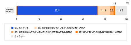 ● 新たな事業創出や製品企画に自社が「取り組んでいる」と回答した従業員は73.5%となった。