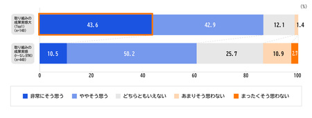 そうではない従業員を比較すると、「成果が上がっている」と回答した従業員の方が、取り組みに対す