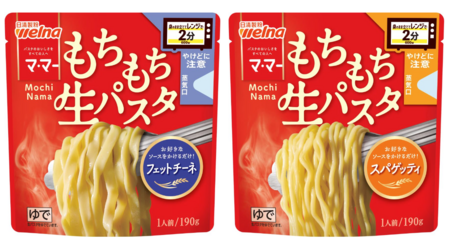 「マ・マー レンジで2分 もちもち生パスタ」は、袋のまま電子レンジで2分間加熱して、お好きなソースをかけるだけで“もちもち”の生パスタが楽しめる新製品。水も鍋も不要で、簡単に女性や若年層を中心に好意度が高い「もちもち食感」を実現しているのが特長です。これまでの家庭用乾麺パスタではカバーできていなかった即食ニーズを新たに捉えることが出来る製品と考えています。