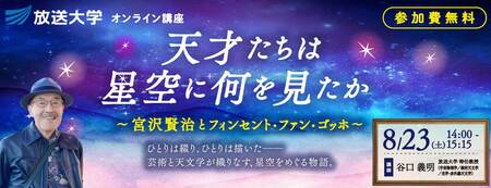 放送大学では、谷口 義明(放送大学特任教授)を講師として、オンライン講演会「 天才たちは星空に何を見たか ~宮沢賢治とフィンセント・ファン・ゴッホ~ 」を開催いたします。