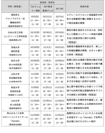 第4弾となる今回の放送では、東北から九州まで全国各地8校の理系学生が「モノづくり」による社会課題の解決に挑む取り組みを紹介します。また、番組後半のインフォマーシャルでは、NOKグループの4拠点(NOK北茨城事業場、ユニマテック株式会社、二本松NOK株式会社、株式会社MEK-J)を紹介し、モノづくりで世界中の「安全」と「快適」を支える社員の姿を伝えます。