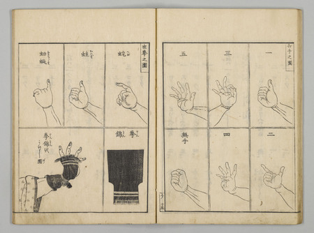 大坂の義浪と吾雀に詳細を聞いて図解した拳会相撲の入門書。拳(けん)は中国伝来の酒席遊戯で、現在のじゃんけんもその一種。本資料の巻末には「名所記総目録」があり、河内屋太助刊行の名所図会類を通覧できる。