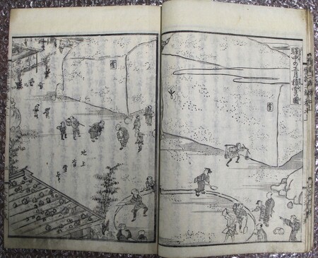 越後塩沢の商人、鈴木牧之(1770-1842)の著作で、雪に関する話や越後での生活などを挿絵付で紹介し評判を得た。見返しや版心下部には「文渓堂」(丁子屋の堂号)の記載がある。