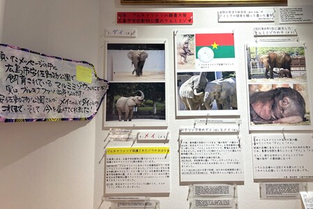 例えば、来場者から寄せられた「マルミミゾウ」に関する声をきっかけに、ブルキナファソで保護され、現在は広島市安佐動物公園で飼育されている「メイ」と「ダイ」の存在を紹介する新たな展示が誕生。来場者の反響を呼んでいます。また、日本とブルキナファソの意外なつながりに驚く来場者も少なくありません。