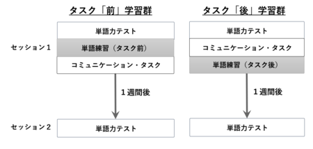 語彙の学習効果は「タスク前練習」が高い: タスク前に語彙練習を行ったグループは、1週間後に行ったテストで、より正確に単語を使えるようになっていました。