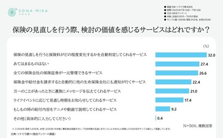 このたび、ソナミラ株式会社(以下、当社)は全国の20代~70代の男女を対象に「保険の見直しに関するアンケート」を実施しました。