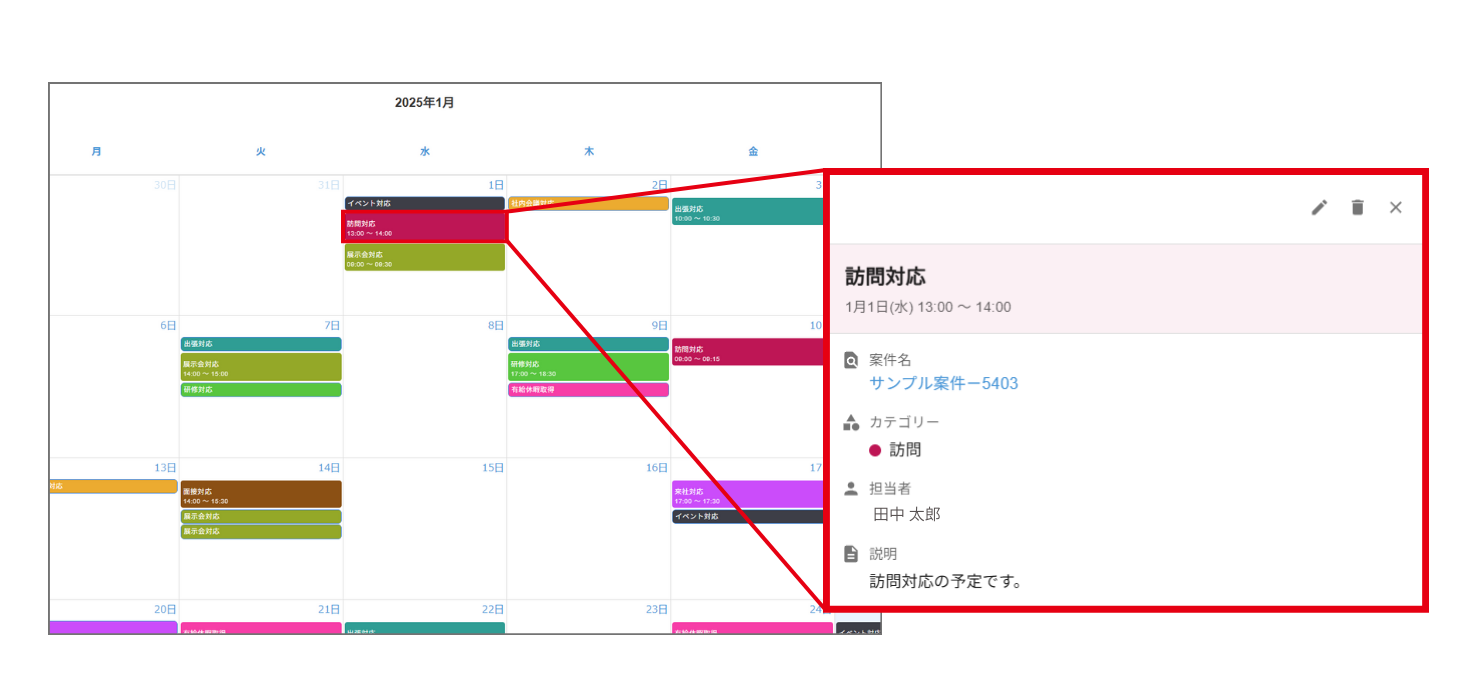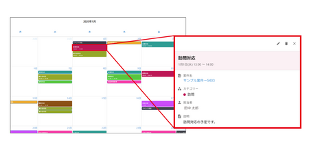 案件との紐づけや繰り返し登録など、kintone標準機能では手間がかかっていた予定管理をスムーズにします。