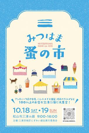 三津ふ頭にアンティーク品や古着、ハンドメイド雑貨、美味しいグルメのお店が150店舗以上集まります。海の見えるロケーションで、三津浜の港町風情やレトロな雰囲気を味わえます。合わせて、隣接する松山市公設水産地方卸売市場で第34回三津の朝市「旬・鮮・味まつり」を実施します。