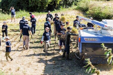 NOK、「水田オーナー制度」に協賛し 熊本事業場社員ら50人が「地下水を育む水田」の稲刈りに参加