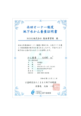 NOK熊本事業場は今後も、行政や地域の環境保全団体、市民の皆様と連携し、地域の資産である地下水の保全に取り組んでまいります。