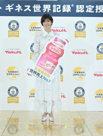 ヤクルトブランドが乳酸菌飲料 世界売上No.1としてギネス世界記録™に認定!内田有紀さんがくす玉で祝福!