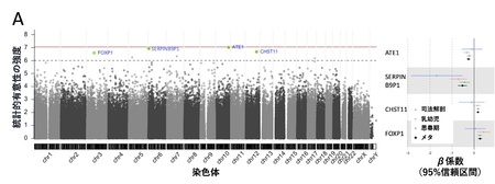 図B: 全脳灰白質容積の比較(VBM)とDNAメチル化:FOXP1・CHST11・ATE1遺伝子と脳の構造変化の関係