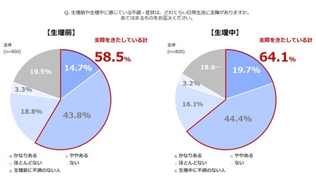 生理中に関する不調・症状で「日常生活に支障がある」と感じている女性は64.1%