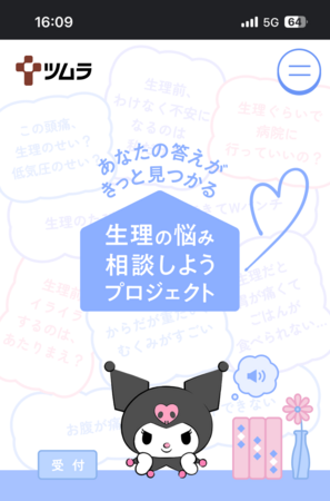 生理に伴う不調やその背景をデータで紹介するとともに、婦人科医によるQ&Aや漢方の基礎知識、体質チェック、病院検索などを通じて、自分に合った対処法や早期受診の大切さを、イメージキャラクターの「クロミ」と一緒に学べるプロジェクトサイトを10月15日(水)に公開しました。