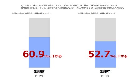 生理前・中に感じている不調・症状によって、「パフォーマンスはおよそ56割」に。