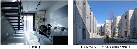 室内においては、ストリップ階段(※2)によって立体的な広がりを演出し、戸建住宅のような生活動線を実現する豊富な間取りを提案しています。また、上下階がすべて自分の住戸であるため、生活音が気になりにくく、プライバシー性にも優れた構造となっています。一方で、住棟の中央に中庭を設け、シンボルツリーやベンチを設置することで、入居者同士のコミュニティの場を提供し、共助の意識付けを図っています。