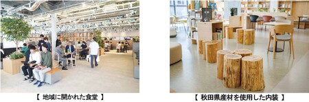 「ZiNOBA」(秋田県由利本荘市、2023年4月開業)と「TSUGUBA」(秋田県にかほ市、2024年4月開業)は、住居棟と共用棟で構成される、TDK株式会社の社員寮です。 地域住民や寮生の交流促進、地産地消の推進、従業員と地域住民の健康増進を軸に、交流広場や、食堂・シェアキッチン・スポーツジムを中心とした共用棟を設置しました。地産地消としては、秋田県産食材を使用した料理だけでなく、自然エネルギーや建材にも秋田県産を多く取り入れ、地域とのつながりを深めています。また、地元の様々な団体と連携して秋田の文化を伝えるイベントを実施しており、「ZiNOBA」の開業から2年で延べ約3,200名の地域の方々に利用していただきました。 |