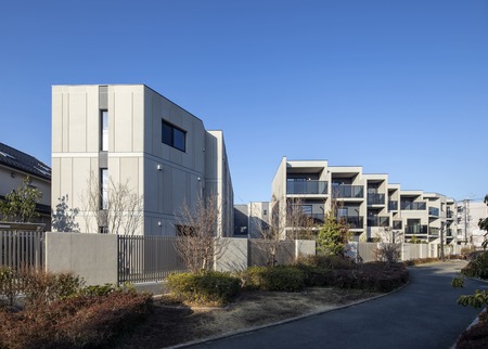 東京には、様々な歴史を経て接道条件の悪い土地がしばしば見られるが、それを長屋として解くことで、土地の価値を高めることに成功した集合住宅である。トリプレックスは、高齢者にとっては厳しい側面もあるが、各住戸の接地性は高まり、その土地に住まう感覚をより強く後押しするだろう。また隣接する快適な緑道に対する雁行配置も効果的で、公的空間と私的空間の関係性を見事に調停している。様々な面で配慮の行き届いた計画である。 |