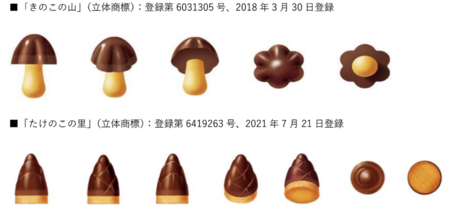 「きのこの山」「たけのこの里」の商品形状の立体商標登録
