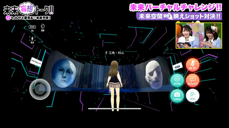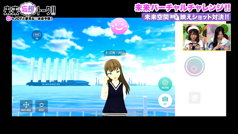後半の「未来空間 映えショット対決!!」では「バーチャル未来の都市」のアプリ上に広がる10年後の未来の街を背景に撮影対決を実施。