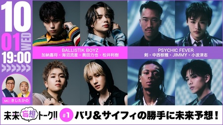 次世代を担う代表として、BALLISTIK BOYZ、PSYCHIC FEVER、≒JOY、OWVのメンバーが各回に登場! 視聴者参加型企画でファンと一緒に未来について考える!
