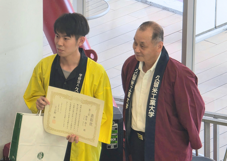 その中の一人である本学機械システム工学科に所属する学生は、学生で取得できる最高レベルとされる「二級機械加工技能士」の技術を有し、コンピューターを使わず制作した鏡餅型のコマで参戦し、見事3位入賞を果たしました。