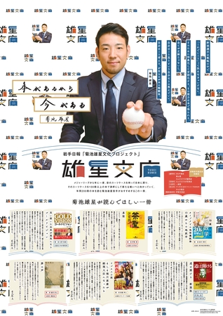 本企画は、年間200冊以上の本を読むほどの読書家として知られる菊池雄星投手が、「ぜひ読んでほしい」と推薦した書籍を、岩手県内の「日報岩手書店会」加盟書店に特設コーナーを設けて紹介・販売するものです。