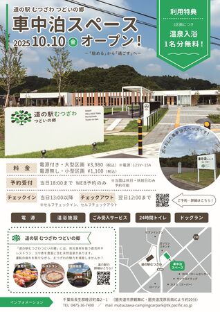 外房の海を始めとして千葉県を回遊される際は、ぜひ道の駅むつざわの車中泊スペースをご利用ください。