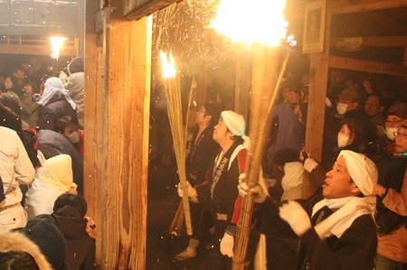 旧正月に行われる国東半島最大の法会「修正鬼会(国指定無形民俗文化財)」は、鬼が松明を持って暴れる荒々しい伝統行事ですが、ここで登場する鬼は仏の化身と考えられており、火のついた松明で叩かれる「お加持」によって、無病息災・家内安全などの里人の身近な幸せを届けてくれます。