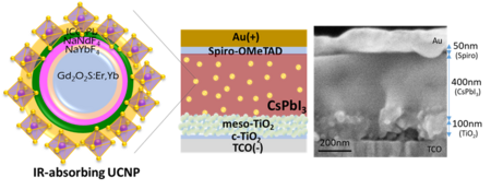 近赤外光、アップコンバージョン、ペロブスカイト太陽電池、色素増感、希土類ナノ粒子、有機無機ハイブリッド