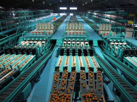 (シートマルチ被覆の様子) (光センサー選果機で1個1個の糖度と酸度を測定)