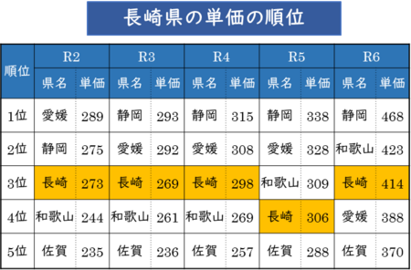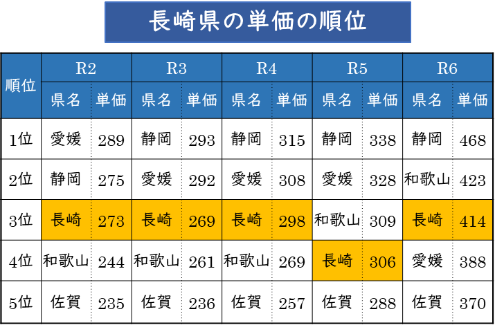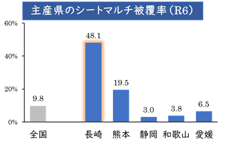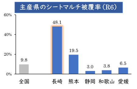 長崎県は全国有数のみかんの産地で、その生産量は全国6位(R6:農林水産省)。みかんを甘くするためのシートマルチ栽培面積は全国でトップクラスとなっており、1㎏あたりの単価は全国第3位とその品質の高さは全国でも高く評価されています。