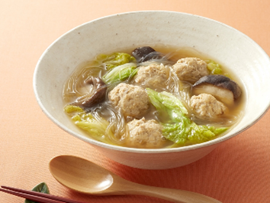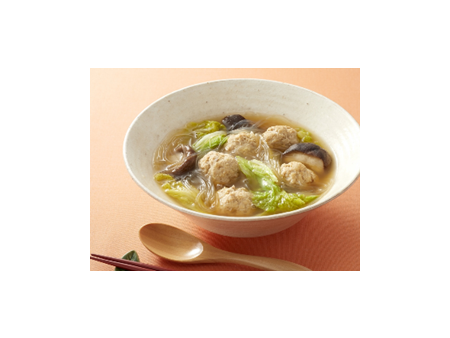 下味をつけて冷凍しておいた豚ひき肉を肉団子にして、白菜と煮込んだスープです。