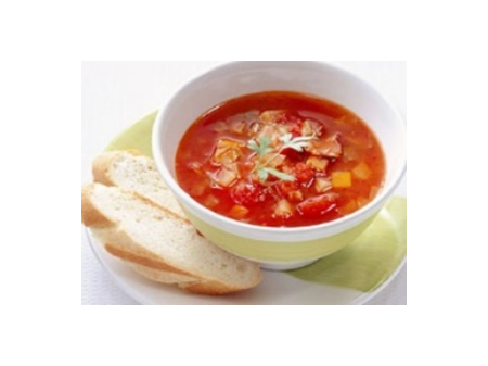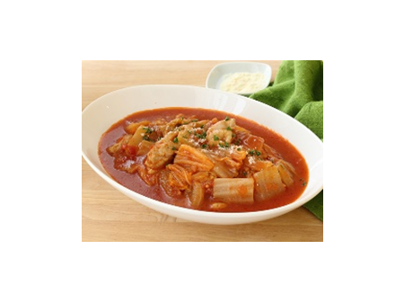 鶏肉と白菜を「カゴメ基本のトマトソース」で煮込んだスープです。