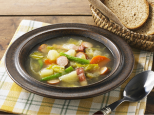 ひとつの鍋の中へ肉やソーセージ、野菜、豆、じゃがいもなど手持ちの材料を入れて煮込んだ、ドイツの庶民的な家庭料理です。