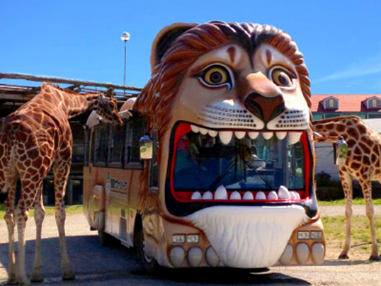 ライオンバスでは生ガイドを聞きながら、キリンやゾウを