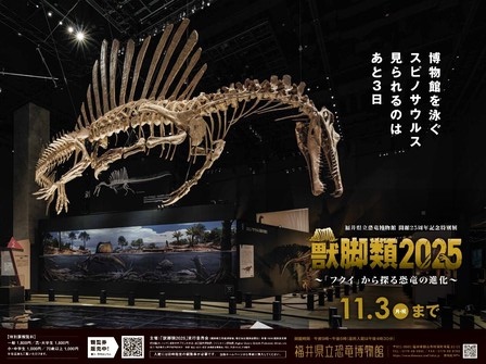 35万人目前の福井県立恐竜博物館「獣脚類2025」、11月3日閉幕! 14mスピノサウルスのフォトチャレ実施中!