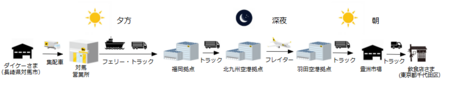 <深夜のフレイター定期便を活用した活魚の輸送フロー>