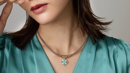 ・ペンダントトップは「鏡面加工」と「研ぎ出し七宝」の技術で美しいコントラストを演出。全て人の手で1点ずつ加工を施し丁寧に仕上げられています。