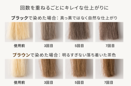 ・「髪が傷まずに、ツヤツヤ、サラサラになる」、「自然な感じに染まる」。(“髪を染めながら、同時にケア”できる)