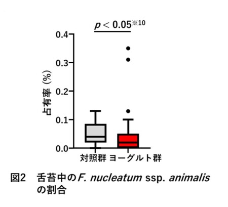 (図1)。また、舌苔中のF. nucleatum ssp. animalisの割合が有意に低値でした(図2)。