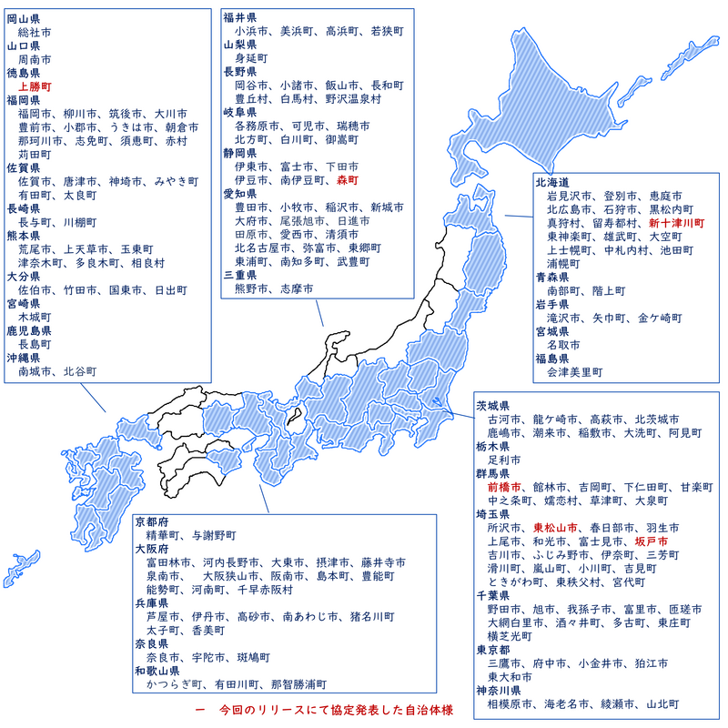 《新たに連携協定を締結した自治体一覧》 ※2025年10月31日時点、総務省 都道府県番号順