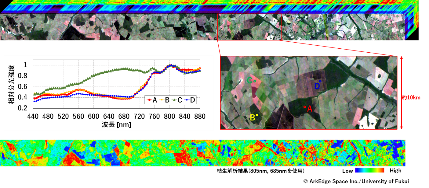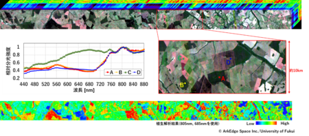 ◆ 福井大学が開発した線形可変フィルタを用いた超小型ハイパースペクトルカメラを、株式会社アークエッジ・スペース(以下、アークエッジ・スペース社)の6U級超小型衛星「AE2a」に搭載し、軌道上での観測に成功