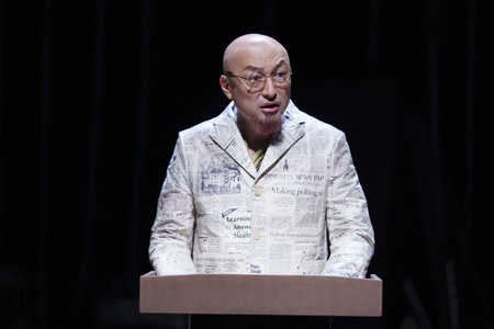 また、『煙草の害について』での山内による一人芝居も圧巻でした。恐妻家のある男が「煙草の害について」の講演を行うことになりますが、話がどんどん逸れて、いつの間にか妻の悪口に…という物語ですが、山内はステージ中央の講演台から離れることなく、言葉だけで男の置かれた状況を見事に表現し、笑いを生み出していました。山内の演技力が光る物語となっています。