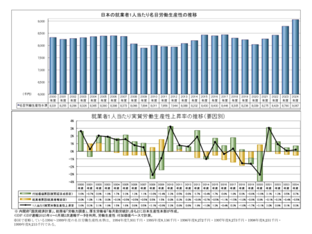 1.2024年度の日本の時間当たり名目労働生産性は5,543円、1994年度以降で最も高い水準に。