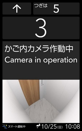 かご内カメラにはIPカメラを採用し、かご内の液晶インジケーターに高解像度の映像表示を行います。従来のアナログカメラでは判別が難しい場面でも、人物の顔や細かな動作まで鮮明に記録できるため、トラブル発生時の状況把握や証拠映像としての有効性がさらに向上します。また、カメラ映像の標準記録日数を従来の3日間から最大7日間へ拡張したことで、トラブル発生から確認までに時間が経過した場合でも、記録の確認がしやすくなりました*3。(標準装備仕様)