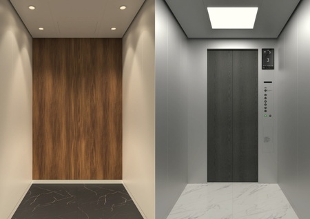 自然素材に近い木目調や石目調のデザインを採用し、上質で落ち着きのあるかご内空間を実現します。